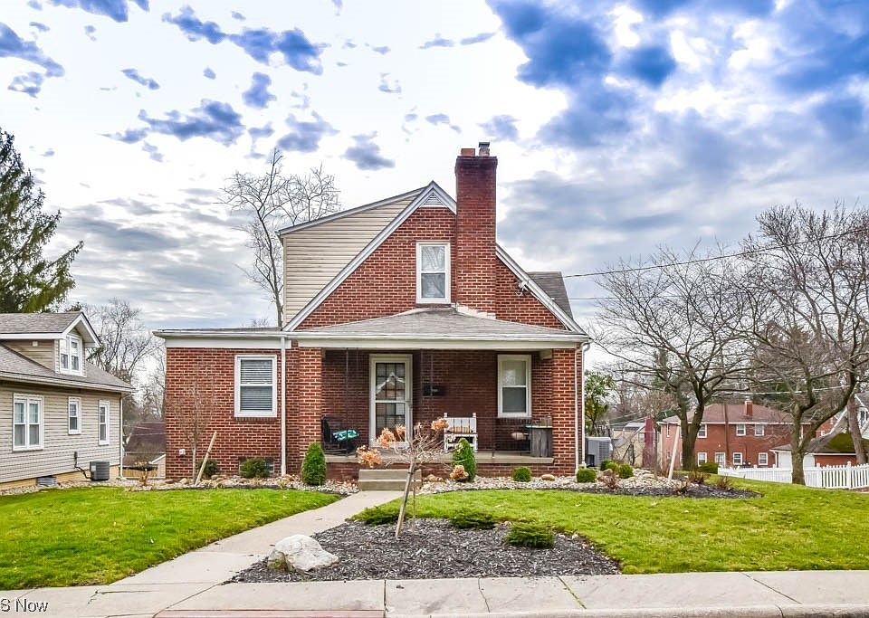 Exceptional brick Cape Cod style home with all of the right improvements! Well maintained and upgraded within the past 3 years with new plumbing, electrical panel, A/C, water softener, whole house water filtration system, wrought iron fencing and more. Professional landscaping and a covered front porch offer great curb appeal and an inviting welcome to guests. Step inside the living room with a tiled entry, cozy gas fireplace and beautiful hardwood flooring that continues throughout most of the home. Archways add character and a nice flow into the formal dining room and updated kitchen with newer laminate flooring and lots of cabinet space. A 1st floor bedroom with access to a full bath with a tiled corner shower is a nice bonus! Upstairs adds two more nice sized bedrooms (one with a walk-in closet) and a remodeled full bath with a tub/shower and solid surface vanity. The glazed tile basement has space to add a rec room, a laundry area and conveniently walks out to the attached 1 car