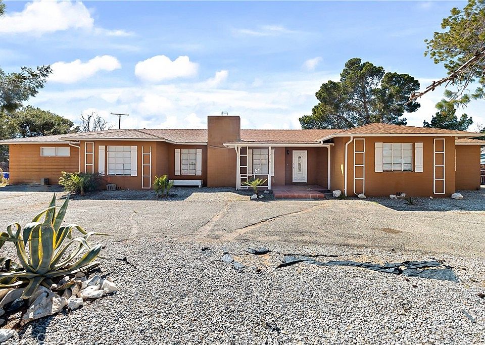 HUGE PRICE REDUCTION!!! This is a MUST SEE!! Beautiful maintained Desert Knolls home. This is a charming 4 bedroom 2 fully tiled bathroom home, one of the bathrooms has a jacuzzi tub. A split floorplan with 3 bedrooms on one side and a ADDITIONAL 1 bedroom on other side with its own private entrance. The title shows 3 bedroom 2 bath but the additional room can easily be used as a 4 bedroom or office space for a growing family. The house was freshly painted and the beautiful wood floors were refinished about 4 months ago. The house has the original wood floors, tile and laminate throughout. Enjoy the inviting kitchen that has been well maintained and includes beautiful granite countertops. The living room has a beautiful brick fireplace for those cool nights. As you enter the home the living room is to your left and straight ahead is a door that leads to the beautiful covered patio that has slate tile covering the floor, lots of space for gatherings and outdoor entertaining. There is a large indoor laundry room as well. The front yard features a circular driveway with nice big trees and has rock landscaping. The front entrance to the home has natural saltillo tile. Property sits on 1 acre horse zoned ranch. The backyard is fully fenced and has lots of space for horses, RV's and toys. Its fully detached garage can protect your vehicle. Commuter friendly in a established close to Desert Knolls Elementary, Granite Hills High School, Police Department, Apple Valley Fire District Station, Rancheria Plaza, Jess Ranch Marketplace and Apple Valley Commons Shopping Center. Link to 3D model: https://drive.google.com/file/d/1dP5n68TvbmQArpezZOMb8CWJhNLrWsre/view?usp=sharing
