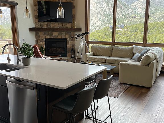 Available 4/7/2025 - 5/22/2025 Unavailable 5/22/2025 - 9/30/2025 Available 10/1/2025 - in 2023, this custom built home sits on almost 8 acres, and overlooks Mt Antero and Mt Princeton with amazing views. Home has a wrap-around deck, and in-floor radiant heat. Fully furnished for mid-term rental (30+ days), and equipped with all high-end appliances, and finishes. 2 bedrooms / 2 bathrooms upstairs. Basement/garage converted to kids zone, also with heated concrete floors, bunkbeds, tv/game room, and garage doors that open both sides to allow open-air concept. All utilities included (unless charging electric vehicle, then will discuss). Lease available for 30 days or longer.