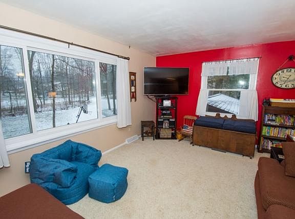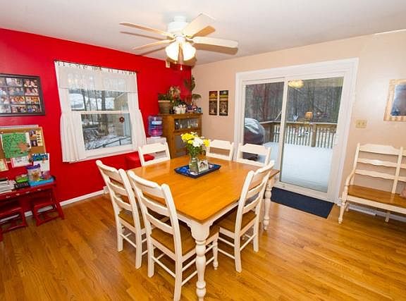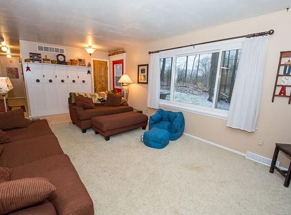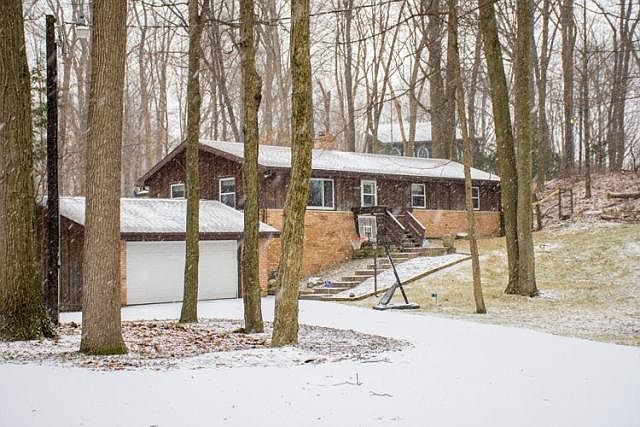 Ranch with lower level walk out on 1+ acre partially wooded lot. 3 bedrooms, 1 bath (access from master bath or hallway) on main level plus spacious kitchen and dining room that opens to deck and lovely screened porch overlooking fenced back yard. Lower level has family room with wood stove and sliding doors to huge patio. Exercise room, laundry, cedar closet and toy room also in lower level. New windows and door, roof 4 yrs old, hardwood in kitchen and dining. 26 x 48 pole barn, new pump in 4" well, alarm system, central vac system, all appliances.
