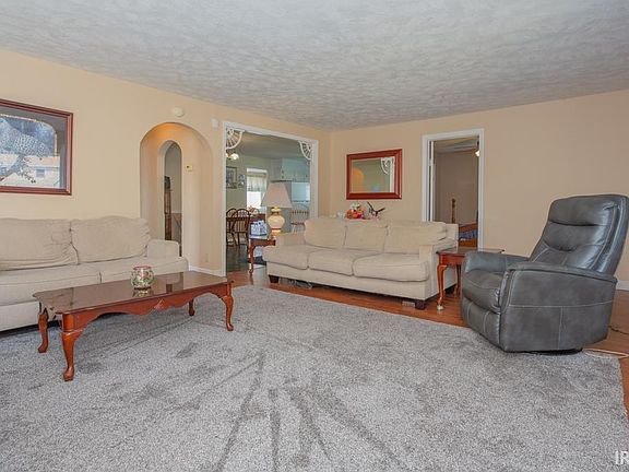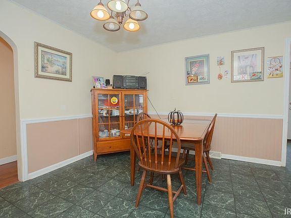 Discover this delightful 2-bedroom corner lot home, lovingly owned by the same owner for the past 25 years. The inviting front porch features a cozy swing, perfect for relaxing and enjoying your surroundings. Step inside to a spacious living room bathed in natural light, highlighted by a large picture window that overlooks the charming covered front porch. To the right, the front bedroom offers ample closet space.Continue into the generous eat-in kitchen, complete with a breakfast bar for casual dining. A full bath is conveniently located off the back hall, leading to the second bedroom tucked away in the rear of the home.The kitchen area also includes a mudroom and laundry space, offering easy access to the expansive wooden deck in the backyard and path to fence gate. The yard has been thoughtfully landscaped over the years, providing a serene outdoor space enclosed by a chain-link fence and partial wood privacy fence. Additional features include a 1.5-car detached garage for extra storage and a gravel driveway for added convenience, and a wired security system for peace of mind. This home has been cherished and major opponents maintained, ready for its new owner to continue its story. Don’t miss the opportunity to make it yours!