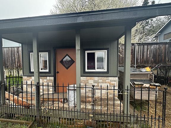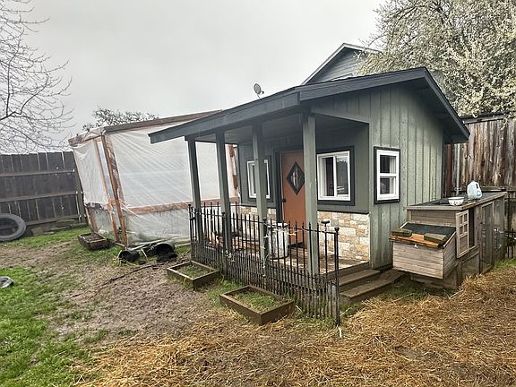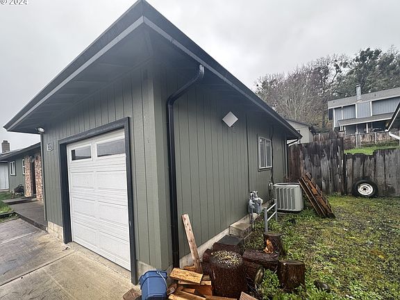 Nestled in Roseburg, Oregon, this inviting three-bedroom, one-bathroom home offers easy one level living. Laminate flooring graces the spacious living room and kitchen, while the bedrooms provide cozy comfort with plush carpeting underfoot. Step outside onto the covered, stamped concrete patio, perfect for relaxing or entertaining in any weather. The high fenced backyard features both a workshop and a playhouse, ideal for pursuing hobbies or providing a space for children to play. Sprinkler system, 5 year roof and gutters. Its proximity to shopping centers and schools adds to its appeal, making it a desirable choice for homebuyers seeking convenience and comfort.