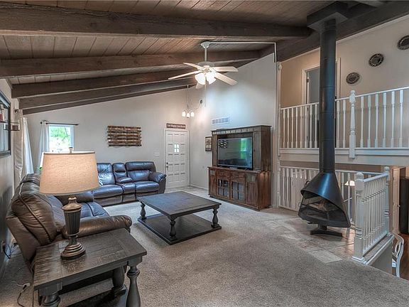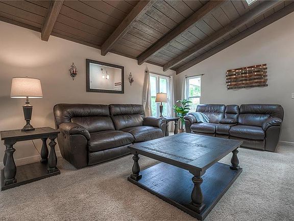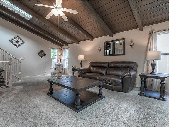 One of the most unique floor plans in the neighborhood! As you enter the main living area, you are welcomed by a vaulted ceiling w/exposed wood beams & skylights that bring in natural light! The kitchen features granite counters, stainless appliances, a pantry for storage & space for a dining area. Master has HUGE walk-in closet & spacious attached bath w/dual vanity, granite counter, & natural stone tiled shower & floor. Bonus finished basement space. The 2 car garage has a built-in storage area & bonus workbench!