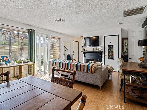 Fantastic Opportunity on the Westside Townhome located in El Domingo Estates a private gated community. This 3 bedroom, 2 bathroom home features a galley kitchen with designer black appliances and dining area open to the fireplaced living room with and a downstairs bedroom and full bathroom. Upstairs features 2 bedrooms and a Jack and Jill bathroom with dual vanities. There is a attached 2 car garage with full laundry hook ups, newer hot water heater and upgraded heating and A/C. This community features beautiful court yards with mature landscaping, water and trash are included in the low HOA fees.