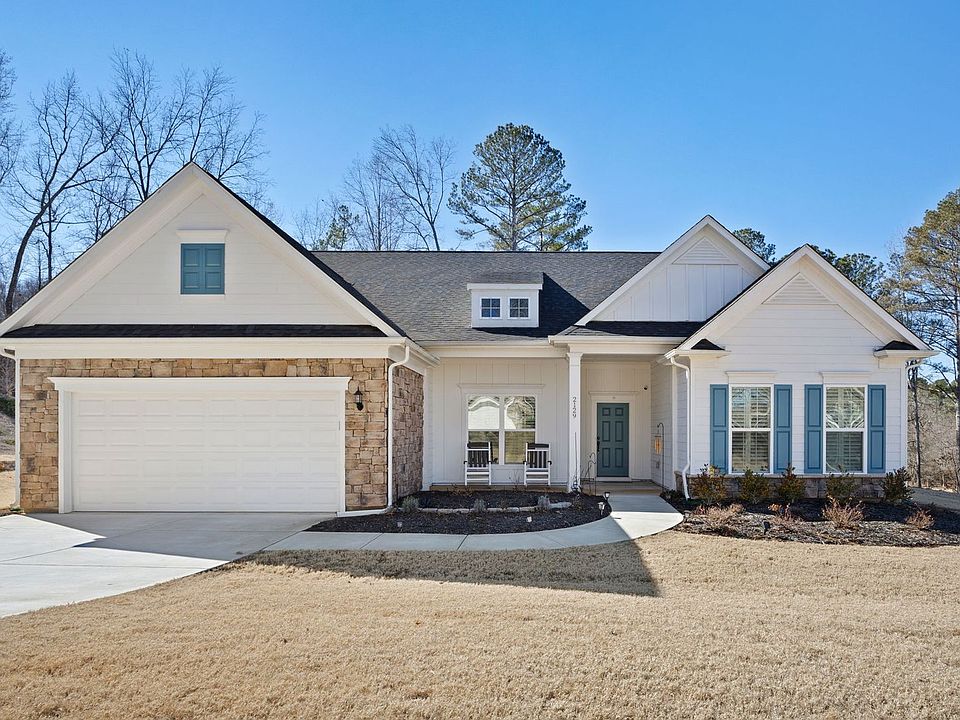 This amazing property comes fully furnished and includes complimentary landscaping. Move right in and enjoy the amazing community amenities; award winning public/private golf course, multiple tennis and pickle ball courts, and resort style pool. Once you step inside this fantastic 3-bedroom/3 1/2 bath home you'll discover a remarkable open concept living area with many modern design finishes. This space boasts wonderful natural light, highlighting the perfect flow between the cozy fireside living room, dining area, and the chef's kitchen equipped with high end appliances, quartz counters, a huge center island, and a walk-in corner pantry. The primary suite is located on the main floor includes an oversized shower that can accommodate wheel chair access. The primary bath also has an elevated counter height on the dual vanity along with a large walk-in closet. The upstairs has a huge secondary living space that hosts a large sectional sofa and is a great place for a game of ping pong. This second floor has a full guest bedroom and full bathroom as well. One particularly special feature of the home is the oversized garage with an added 3rd bay area perfect for a golf-cart or workshop/storage.