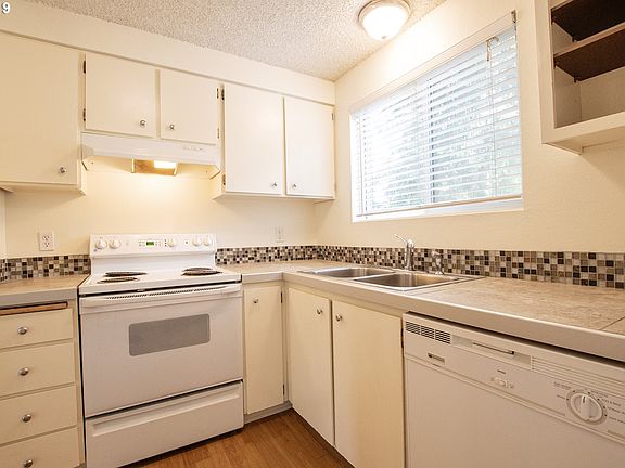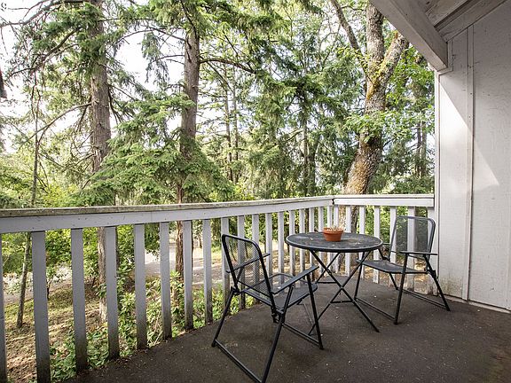 Nestled in the trees of the South West hills, this conveniently located private getaway has all the essentials! Kitchen has been upgraded with tile counters and decorative backsplash. Fresh wall and trim paint. Two closets in the bedroom would allow space for future installation of a washer/dryer. Relax with your favorite beverage from the comfort of your very own back deck or stroll around the well maintained grounds and unwind.