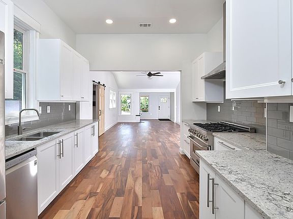 Gorgeous Total Renovation! Smart Storage, Designer Details, and Mixed Wood Elements converge at this Modern Kirkwood Bungalow. A Rocking Chair Front Porch welcomes you into a Foyer Entryway with Built-In Drop Zone. Hardwood Floors lead into a Spacious Family Room open to a Bright White Chef's Kitchen with Professional-Grade Stainless Steel Appliances, Quartz Countertops, and Walk-In Pantry with Wine-Rack. Relax and unwind in the Main-Level Master Suite with Custom Walk-In Closet and Spa-Style Bathroom offering Dual Vanity, Frameless Glass Shower, and Soaking Tub. A Second Bedroom enjoys a Private Ensuite with Designer Tile, while a Third and Fourth Bedroom utilize a Hall Bathroom. Outside, a Step-Out Deck overlooks a Flat, Tree-Lined Backyard perfect for gatherings with friends and family! An Expanded Parking Pad completes this stunning home. STEPS from Kirkwood Village, with local favorites like Taproom Coffee, Kirkyard Public House, Le Petit Marche, The Pullman, and so much more! Easy Intown and Interstate Access for Quick Commute to all of Atlanta.