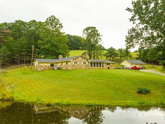 YOU WILL HAVE TO SEE TO BELIEVE! So much opportunity exists on the rare mountain property. Minutes from Downtown Vinton/Roanoke, airport and Parkway, this 56 acre property is comprised of lush meadows, rolling hills, timber and views to die for. Begin your morning on the enclosed front porch overlooking the 1 acre pond where abundant wildlife gathers. Ranch style home featuring one level living with 3 BRs, 2 BAs, great room, 2 stone fireplaces, open kitchen concept, ultra-clean and full of character. The 10-stall horse barn, lighted riding ring, paddocks and grazing area offer too much to list, endless possibilities. Wedding venue, winery, horse farm, or private estate you name it!