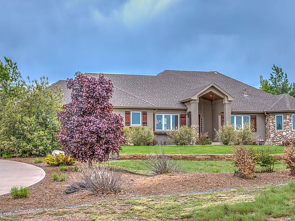 Custom 4 BR, 3 BA + den house on 2.39 acres, with awesome views. Gourmet kitchen with gas cook-top, 42 inch cabinets with under cabinet lighting, stainless steel appliances, walk in pantry, breakfast bar. Large master w/2 walk in closets, fireplace, sitting area. Living room has a river rock fireplace, shelves, cabinets. Lower level features Family room, bar, refrigerator, microwave and dishwasher. 65 inch tv, stereo, speakers included. Outside lighting under trees, fire pit, water feature.