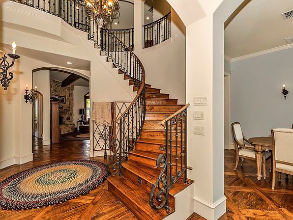 Beautiful Tuscan style custom built brick & stone home w-circle drive located on golf course lot in resort style community minutes from beautiful Lake Ray Hubbard. Beautifully appointed FDR w-arched windows, FR w-massive stone FP, beamed ceiling, palladium style triple French doors opening onto lrg cvred patio. Gorgeous mstr bdrm w-wood beamed ceiling, & handscraped wd flrs. Loaded w-must see amenities.