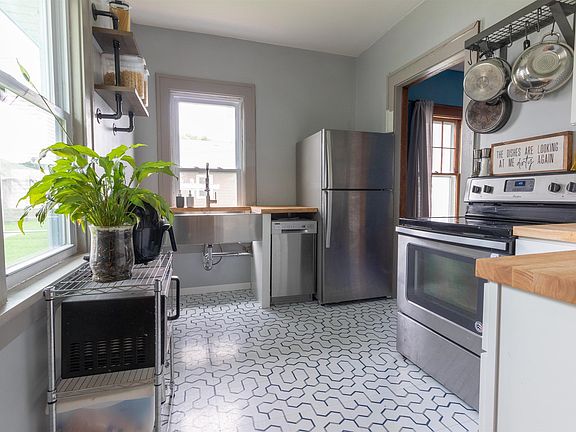 Welcome home! This 2 bedroom bungalow has so much to offer! The inviting front porch has plenty of sunlight and is a great place to relax. Inside you'll find many updates. The kitchen was completely remodeled in 2022 with new cabinets, butcher block countertops, flooring and windows. A/C was added in 2022, roof 2019, living room and dining room flooring 2018, and a full bathroom remodel 2018. The unfinished basement could make a great rec room or storage space. Outside is a fenced yard and garage. All of this within a few minutes of Genesis West, schools, parks, a bike path, and shopping. Call today for a private showing.