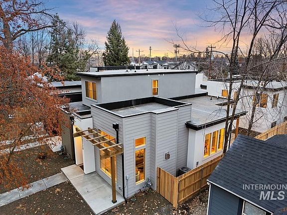 Come check out this incredible Glancy Rockwell custom home design built by Shiloh Builders just minutes away from the Boise Ridge to Rivers trail systems, Boise White Water Park, and the Historic Hyde Park North End areas. Living area boasts 12ft ceiling heights with large windows throughout. Loft/ office area. Large court yard for entertaining and enjoying North End summer nights! Home amenities include custom cabinets, quartz, tile, hardwood, and modern fixtures. Power availability in the garage to power your electric car! Feels like a vacation home and would demand top rates as an investment!