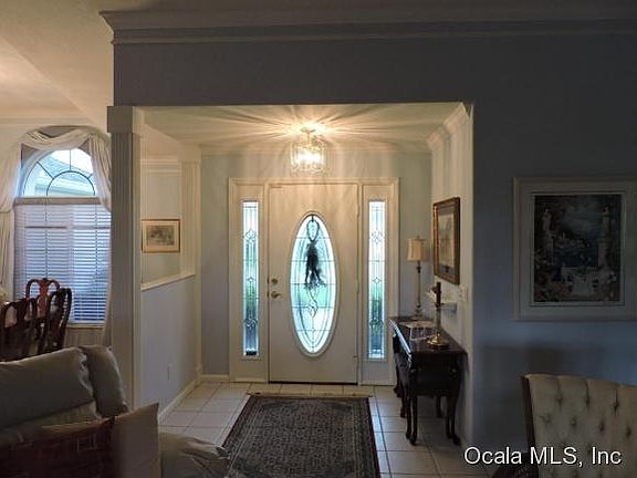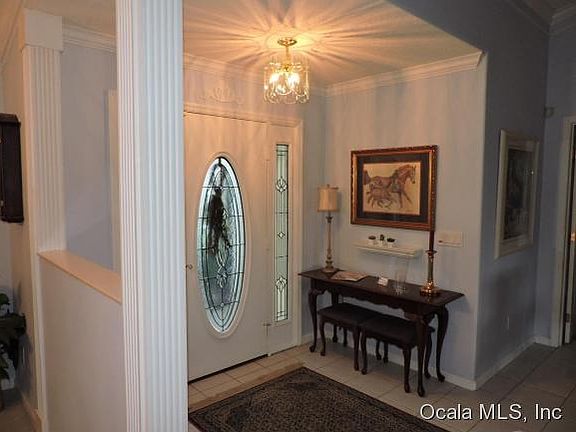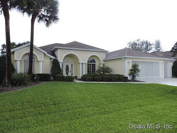Fabulous Pool home on golf course with panoramic views. 3/2/3 with all the finishes you would expect. Kitchen has raised white cabinets, SS appliances, granite countertops, tiled backsplash and island for your convenience. Cathedral ceilings with extensive molding really accent the volume ceilings. Custom painted interior, carpet is upgraded, tiled floors, custom ceiling fans, custom light fixtures, window treatments, tinted windows, rounded corners, and the list goes on. The home has additional insulation and is very energy efficient. The exterior has lush landscaping, screen on garage door, dimensional shingles, and great curb appeal. The garage is extra deep and has golf cart garage door. The lanai is tiled, ceiling fans, summer kitchen, windows for a 4 season room and it is all under heat and air. The pool area overlooks golf views and is a salt pool with solar heating, and a large screen enclosure.