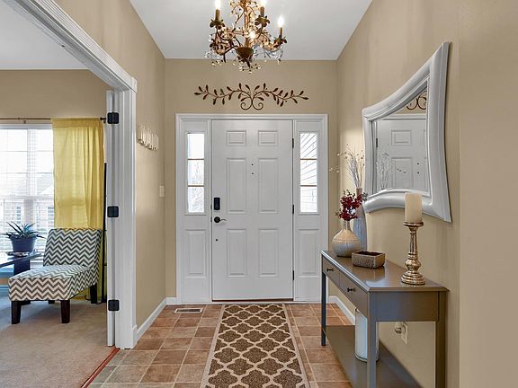Nicely updated 2 Story with Brick Front Exterior and 3 car garage in Harter Farms. 4 bedroom, 3.5 bath with a finished LL backing to woods. Wide entry foyer opens to an office and dining room leading to the open floor plan great room to kitchen. Great rm w/gas fireplace and large windows brings tons of natural light. Kitchen w/ 42" cabinets, center island & stainless appliances. Bfast area w/ bay leads out to the deck with wrought iron spindles overlooking the large patio. Main fl laundry off the kitchen leads into the heated & cooled garage. Master suite w/ updated bath and plenty of close space, master bath with dual vanity as well as tub and shower. 3 more good sized rooms w/ walk-in closets and another full bath upstairs. Finished LL is great for entertaining complete with a stone surround bar, kitchen area with granite tops, huge rec room and another updated full bath. Hot Tub stays. Walk out lot and so much more, this one is a must see!