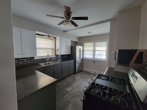 Pleasant 3 Bedroom, 1 1/2 bath in a quiet neighborhood. Refrigerator, washer and dryer, microwave, stove. A nice porch for relaxing. Dining room, kitchen and living room on the main floor, with bedrooms all upstairs. There is a large basement for storage and laundry. A good size garage that won't currently work for parking cars but could make a great workshop or storage area. Mostly fresh paint throughout with lots of upgrades. Some work is still being completed but will be done over the next few days. Animals allowed for an addition monthly fee and deposit. Utilities not included. Please fill out an application through Zillow. Beware of Facebook ads requesting downpayments these are scams. Renter pays all utilities. 3 month penalty for breaking lease early.