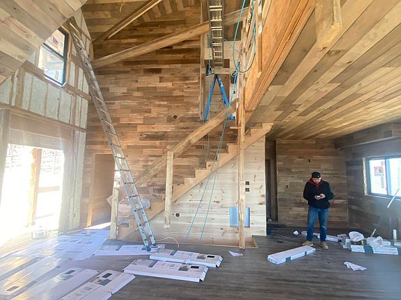 With approximately 3,200 square feet, this spacious retreat features four master suites, each offering privacy and comfort. Designed with an upscale mountain-modern aesthetic, the cabin boasts dramatic walls of glass, an open-concept floor plan, soaring cathedral ceilings with authentic reclaimed barn wood in the great room, and spectacular views from every angle.