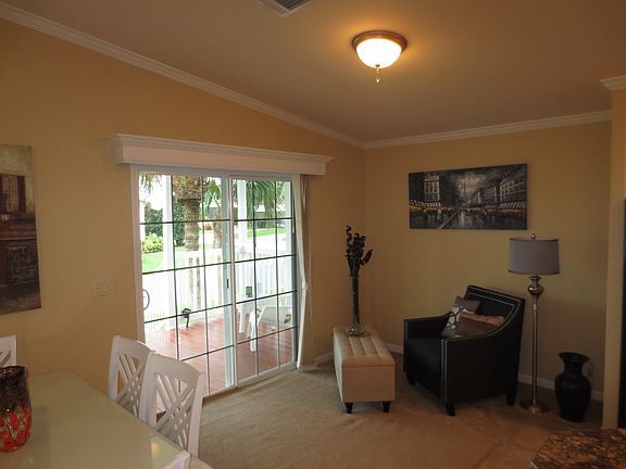 Enter this lovely NEWER home through the front door into the 10 X 26 screened porch, a fantastic place to entertain and socialize with neighbors. Enter the interior through the sliders on the porch into the good size dining room and notice the vinyl plank flooring. No carpet throughout, except in the 2 bedrooms for comfort. Dining room is open to the wonderful kitchen. All black appliances that Stay You will find tons of cabinets and counter space with lovely counter tops and a long breakfast bar. Behind the kitchen is a good size laundry room with Washer and Dryer that also STAY. Laundry room also holds the pantry. Kitchen is open to the living room with ceiling fan and another entrance into the house from under the carport. Notice the wide hallway to the bedrooms and baths. First you will see the den that is perfect for a home office and could also be used as a third bedroom, perfect for the grand kids. All the way back to the large primary bedroom that can easily fit a king size bedroom set with walk in closet that goes from wall to wall. Primary bath has double sinks with a large mirror above, a walk in shower and tons of cabinets. Guest bedroom can fit a queen size bed and would be very comfortable for your guests. Guest bath has a solar tube and a shower / tub combo. Wide open space in the back of the house with No Neighbors behind you. All furniture is new and is Negotiable. Lakes of Melbourne is a wonderful 55+ community with so much to do. Heated pool to use year round. Large clubhouse with billiards, library, fitness room, card room, game room, craft room and a ballroom with a stage. There is also tennis, lakes to fish in and more.