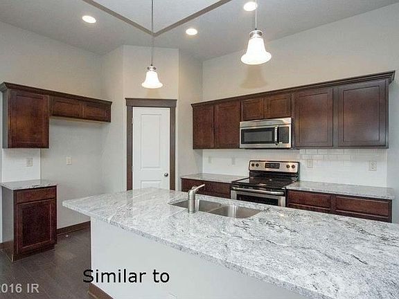 Summit IV ranch on daylight lot in beautiful Fox Valley of WDM Hardwood floors extend throughout the entry, hallway, great room, and kitchen/dining areas. Great Room has stone fireplace with stained mantle and 10' ceiling. Kitchen features granite counters, ceramic backsplash, soft close drawers, corner pantry, island, stainless appliances (MSD, and larger dining area. The new enlarged Master Suite has trayed ceilings and fan. Master bath features a 4'x4' ceramic tile shower, raised double vanity with granite and tile floors. Two additional bedrooms have vaulted ceilings and shared bath with granite counter and tile flooring. First floor laundry doubles as a drop zone. Oil rubbed bronze fixtures and hardware throughout. The daylight basement is stubbed for a future 3/4 bath and can be finished. 3 car garage contains extra deep two car garage and standard single. Rear 14'x14' deck round out the main features of this beautiful home. Passive radon included.
