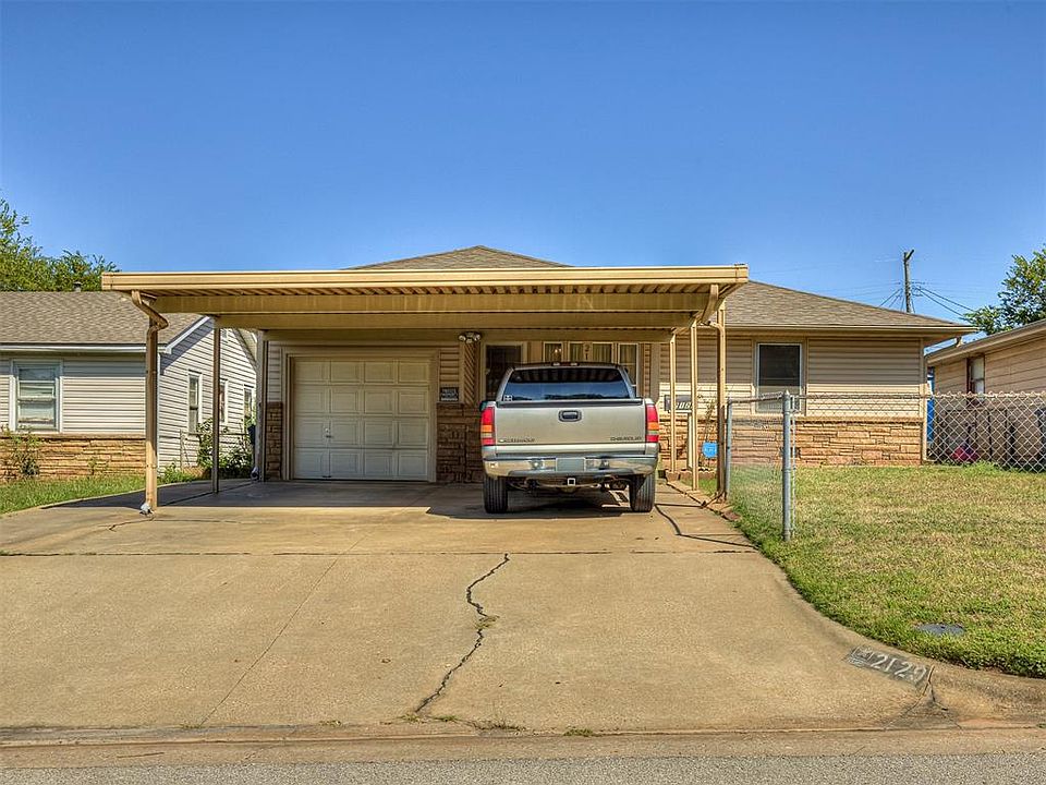 Come check out this great find Near SW. 56th and Penn, close to everything. This home has a 1 car garage and also has a large 2 car carport. It's currently a 2 bed with 1 bath, but originally it was a 3 bedroom home. The 3rd bedroom was turned into a large dining room, there is still a closet. This could easily be converted back to a 3rd bed with the addition of just one small wall. The home has had only 1 owner and has had central heat and air added. The gas heater in the dining room is just for additional heat now, it is not the primary heat for the home any longer. There is a 19X8 shop with electricity in the back yard as well as a large drive through fence. The vacant space behind the home and between the fences is an alley easement, so it allows for entry through the back fence. You will love relaxing on this large covered back patio! Come check it out.