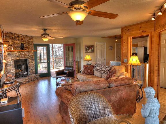 Extremely nice 3 bedroom, 2.5 bath home in a gorgeous mountaintop setting! On 2 lots with a total of 2 acres. Very private! Overlooks a beautiful mountain view. Other features include an open floor plan, stack stone fireplace in the living room, screened in porch, attached 2 car garage, custom kitchen with stainless steel appliances, spacious bedrooms, and a view out every window! This home is perfect for anyone moving to the area, looking to relocate, or needing a 2nd home. A must see offered at an excellent price!