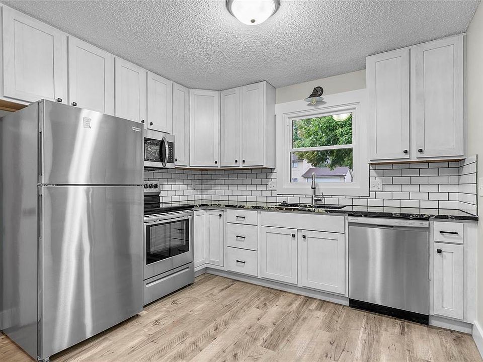 Move-in ready completely remodeled walk-out ranch! Just blocks from Wetherby Park and Iowa City's free bus route, plus conveniently located near all the food, shopping, and entertainment the South District Market and Iowa City Marketplace have to offer! Practically new from the studs inward. All new kitchen appliances, cabinets, counters, and cupboards. Completely remodeled full bathroom with tiled tub shower. All new LVP floors throughout, all new doors, trim, paint, vinyl windows, new roof 2019, new concrete driveway and service walk, new AC, high efficiency furnace and heat pump water heater. New washer/dryer. Finished lower level with family room and bonus lower level room which could function as a non-conforming 3rd bedroom, plus 2nd toilet in basement. New active radon mitigation system, added new ceiling insulation, new shed. Yard can be fenced. Property must be owner-occupied.