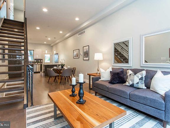 Beautiful new construction home on a quiet side street in Point Breeze with four bedrooms, three bathrooms. Enter into bright living room with extra large front windows, beautiful hardwood floors, dining area and kitchen with large side island counter, gray and white cabinets, beautiful grey subway tile back splash and door to rear yard. Second floor has two bedrooms with unbelievably large windows, a full bath and laundry closet with washer and dryer. Third floor master suite has a gorgeous bathroom with glass stall shower and double vanity and large walk thru closet. Stairs lead up to roof deck with Center City views. Basement is finished with white and grey tile floor, rear separate bedroom, den and a full bath. This home is clean and bright with plenty of space and beautiful bright grey tones in every room. There is a 10 year tax abatement and 1 year warranty! The owner can move the condenser to the back fence prior to closing to open up the backyard.