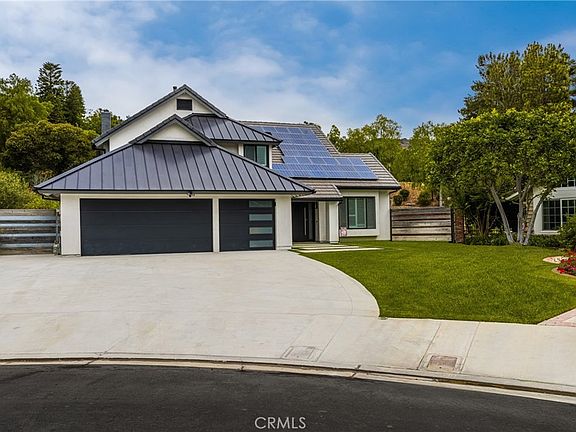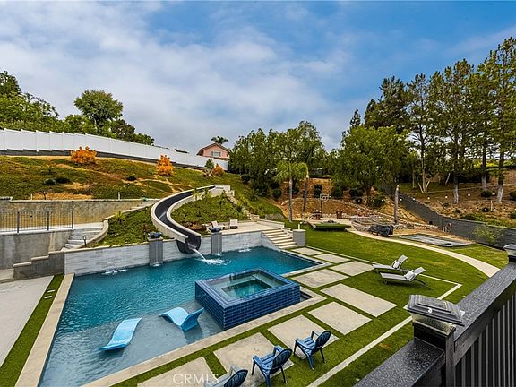 Welcome to this impeccably upgraded cul-de-sac residence, featuring a permitted 1,000 sq. ft. guest house with a full kitchen and full bathroom-perfect for guests, entertaining, or multi-generational living. Guest house is included in the main home square footage. The main home showcases a fully remodeled chefs kitchen with a large island, custom fold-out window, ZLINE 6-burner stove with griddle, and a Sub Zero refrigerator. Enjoy seamless indoor-outdoor living with custom La Cantina accordion doors, custom built-in Mont Alpi BBQ station, and a backyard oasis like no other- complete with a custom pool/spa, Baja shelf, 75 ft water slide, water/fire features, new lighting, and an outdoor shower. Recent upgrades include: New roof, owned solar, PEX repipe, and new concrete driveway and patios. Dual zone A/C, newer furnace, whole house fan, and Culligan water filtration system. Remodeled bathrooms and laundry room, recessed lighting, epoxy and hardwood flooring throughout. Custom built-ins in the office loft and living room. Newer smooth texture interior/exterior paint, custom vinyl fencing and wood gates. New lighting fixtures, keyless entry front door, Ring Doorbell, and closet organizers. Custom shutters, remodeled fireplace with built-ins, and deck off the primary suite with direct patio access. 2-3 RV parking spaces with GATED private access at top back of property, built-in garage attic storage, retaining walls, and automated irrigation system. Perfectly blending luxury, function and fun, this home is designed for effortless living and unforgettable entertaining. Don't miss this one-of-a-kind opportunity in one of Yorba Linda's most desirable neighborhoods!