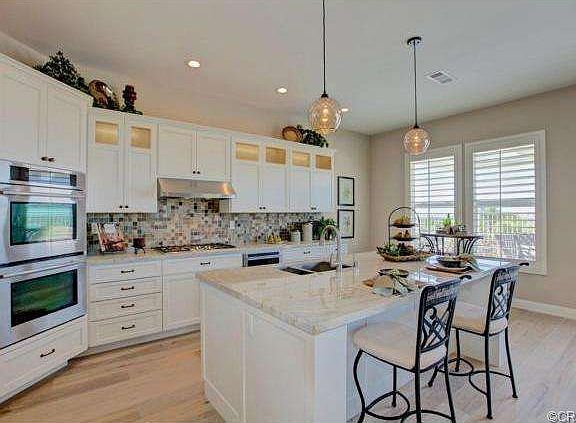 Unquestionably one of the most spectacular homes in Palmia Heights! Be the next proud owner and first to enjoy this highly upgraded, most desirable single level view home.Intricate & sophisticated attention to detail like a model home.Cheerful slate tile at the front door leads you into a great room with wire-brushed white oak flooring, basswood plantation shutters, newly installed 8' interior doors and LED lights throughout.Absolutely gorgeous kitchen with white top quality custom wood cabinets, white makauba granite/quartzite counter tops from Italy, equipped with Brand new Jenn-Air appliances including microwave drawer.The massive island sits directly in front of your gorgeous slate ledger stone fireplace.Master suite with patio access offers dual sinks enhanced by custom cabinetry,porcelain tile flooring, walk in closet & hand-held and spa like rain shower.Convenient interior laundry & direct access 2 car garage with new insulated garage door & opener. Breath-taking sunset and panoramic view of the canyon from the backyard.Palmia is Orange County's premier 55+ gated community with clubhouse, pool, spa, tennis, bocce ball courts, shuffleboard, 18 hole putting green, billiards, clubs & activities for the active lifestyle including Lake MV membership.