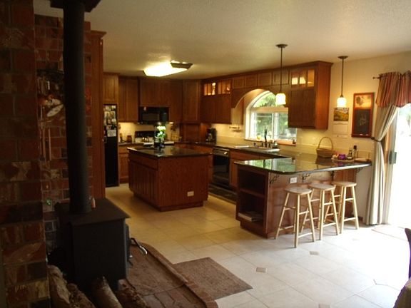 Very nice 3BD/2BA Ranch on nearly 2 level and fenced Acres.Home has a brand new roof and a newly remodeled kitchen with slab granite and custom cabinets.New water heater and new wood stove.Beautiful,private back yard with fruit trees and garden area.200sqft outbuilding makes a great work area.Plenty of room on side of house to drive back to yard where you have enough room to build a shop.Buyer to verify schools and all other information
