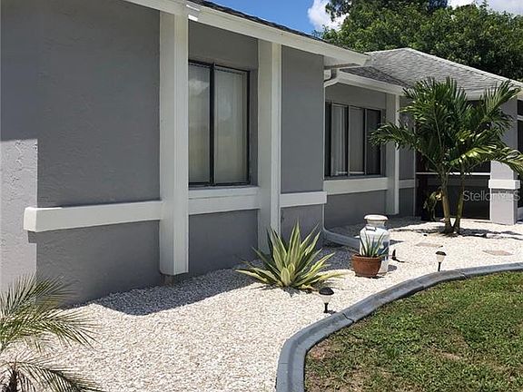 BACK ON THE MARKET DUE TO BUYERS BUYER FINANCING. Beautiful POOL home large privacy fenced backyard and lushish curb appeal with palm trees and crushed shell.ened entryway. Updated Jacuzzi pool motor Bluetooth controlled, auto vacuum cleaner, with a solar cover and safety gate. New flooring, paint, ceiling fans, dishwasher, and so much more. In addition to the Large screen Lanai you have a 10 x 12 covered concrete slab large back yard perfect for a BBQ and extra seating to entertain guests and family. Home is move in ready.