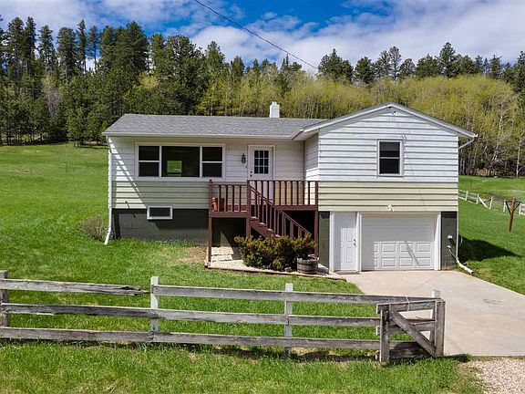 Whispering pines, quaking aspens, and a babbling brook await you just outside of Deadwood! For more information call Steve Muller 605-645-5213 with Re/Max in The Hills. This idyllic homestead nestled in the heart of the Black Hills offers privacy, remarkable views and easy access off a county-maintained road - all with NO COVENANTS! You'll love being surrounded by nature as you gaze over your nearly 8 acres of lush grassy meadows, rock outcroppings, year-round streams and wildflowers. Step inside this bright and charming 3 bed/1 bath home and enjoy viewing native wildlife from every window. You will appreciate the recently updated kitchen featuring white cabinets and stainless-steel appliances. The unfinished walkout basement features a wood stove to warm you up on those chilly winter nights and offers you the opportunity to create your own perfect master retreat. Make many memories grilling with your family and friends on the decks, while listening to the streams flowing through your scenic landscape. Water is supplied, fresh, from a free-flowing spring with a robust filtration system – if you are looking for complete independence, just add solar and you're OFF GRID! There's plenty of storage in the attached garage and a pole barn that is waiting for your pets and livestock. If you have been searching for a year-round homestead, or a cozy vacation retreat, exuding all the Black Hills have to offer at an affordable price - call to schedule a showing today!