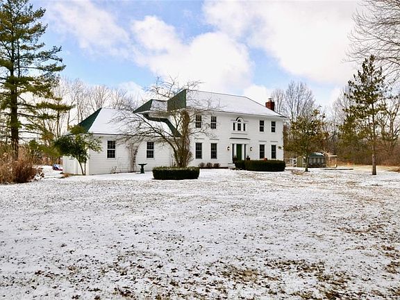 Discover a classic in this Gorgeous white Colonial- sitting on 6.12 private and picturesque acres. Impeccable fine craftsmanship introduces soaring 2 story entry w/ luxurious molding, columns, pilasters,and fluting. Generous hearth warmed formal LR and gracious DR are accentuated w/ beautiful hardwd floors. Kt is a balance of style, comfort and convenience w/ cherry cabinetry, granite counter tops,SS appl, bay bow brkfst rm. Fr is perfect for relaxation and tranquil views. elegant Mstr Ste w/ garden tub,dbl vanity, sep shower, walk-in closet. Awesome 24x40 custom built authentic Gothic Arch Bow roof barn- perfect for all your needs. The grounds are neatly landscaped with unique outbuildings, Pergola, She shed, chicken coup and private pond.