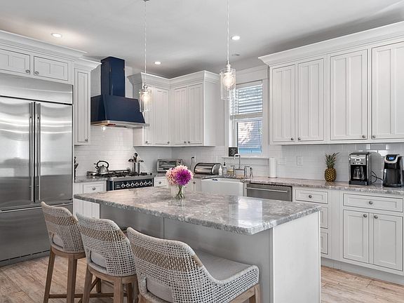 **OPEN HOUSE SATURDAY 8/20 11AM-1PM!** Introducing one of the most sought after locations in all of Stone Harbor! Dressed in Hardie Plank and Azek, 213 105th is truly a stone harbor gem! Newly constructed, this home is perfectly customized boasting 5 bedrooms, all ensuite 5 full bathrooms and one powder room all dressed in tile and exquisite vanities. The Master suite is located on the first floor with a king bed and oversized private bath, On the second floor there are four additional bedrooms: 3 of which are suites with their own private baths and a bunk room with 2 sets of built-in bunk beds. The bunk room is attached to a jack-and-jill bath, which leads to a fifth upstairs bonus room which can be an upstairs sitting area by day and a sixth bedroom by night. There is a beautiful open gourmet kitchen with custom made cabinetry, top of the line appliances, and complimenting stone counters and a generous center island with ample room for you and your family. The great room offers a fireplace, a dining room topped with coffered ceilings on the first floor. Flowing through this home you will notice beautiful Hardwood floors, and extensive mill and trim work to complete the details. Not to forget, this home offers one of the best outdoor entertainment areas you can find! The Stunning backyard oasis introduces you to an in-ground gunite pool, pavilion with a wood burning fireplace and large sitting area, and an outdoor bar and TV area. Relaxation galore when you entertain from the large second floor viewing deck overlooking the backyard and park. The marble hardscape enhances the luxurious landscape and flower boxes. Last but not least, Chelsea Park is one of Stone Harbor’s treasures and you have your very own access! This property is less than 2 blocks from 105th street beach, and well within walking distance to town, shops, mini golf and dining ice cream, etc. This home comes gorgeously furnished and something not to be missed! Call us to Tour this home today!
