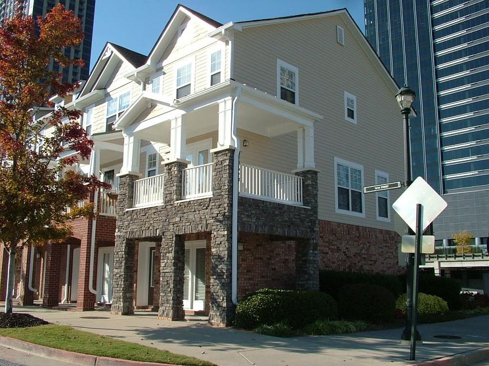 Spectacular end unit townhome in Atlantic Station. Awesome natural light and open main floor. Kitchen w/stainless steel appliances, granite counters, maple cabinets, island, wine cooler, pantry & breakfast nook. Living room w/fireplace, hardwoods on main floor & stairs. Master w/vaulted ceiling. Two closets and double vanity in bath. Wrap-around front porch. Private deck & drive-under garage. Awesome views of Atlantic Station & Midtown skyline. Walk to shops, restaurants and Marta Rail station. Neighborhood park, pond and sidewalks.