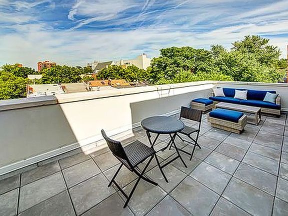 Welcome to this sun-filled boutique one-bedroom in Park Slope. This modern apartment boasts two oversized private terraces, complete with a BBQ grill and outdoor furniture, perfect for relaxing or entertaining. Inside, enjoy white oak hardwood floors, energy-efficient LED lighting, and a chic Epicurean-style kitchen featuring quartz countertops, white shaker cabinets, and stainless steel appliances, including a dishwasher and microwave. The full bathroom offers a spa-like experience with imported Italian ceramic tiles, glass shower doors, and overhead rain showers. Additional highlights include abundant closet space and split AC units. The building itself offers top-notch amenities including an elevator, virtual doorman with video surveillance, free laundry room, complimentary fitness room, and a game room with a pool table, ping pong, and bar. For your convenience, bike racks, a roof lounge, and extra storage units are also provided. Pets are welcome, and heat and hot water are included in your rent. Contact John for a tour today.