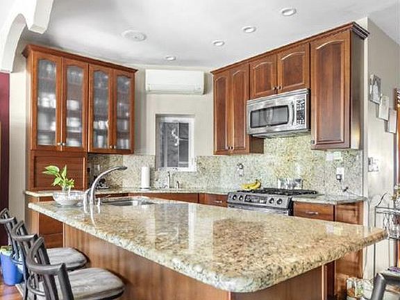 Location and PRICE REDUCTION! Desirable Greenwood Heights neighborhood!! Move Right In!! Mint condition attached brick, 2 family home (originally 3), on lovely tree-lined street. Owners triplex features hardwood floors throughout, beautiful kitchen with granite counter tops, stainless steel appliances, 2 sinks, tile floor, plenty of storage, access to large, tiled patio with stairs to yard and set-in salt water pool, formal dining room, large living room, 2 bedrooms (possibly 3) with large closets, (one walk-in), 3 tiled bathrooms; 1 full with Roman Jacuzzi tub and stall shower, one ¾ with large stall shower and one ½ bath, full finished basement with separate storage and laundry room. 4 zone heating, 5 gas fireplaces with original marble mantles, 6 ductless AC units. 3 BR rental.