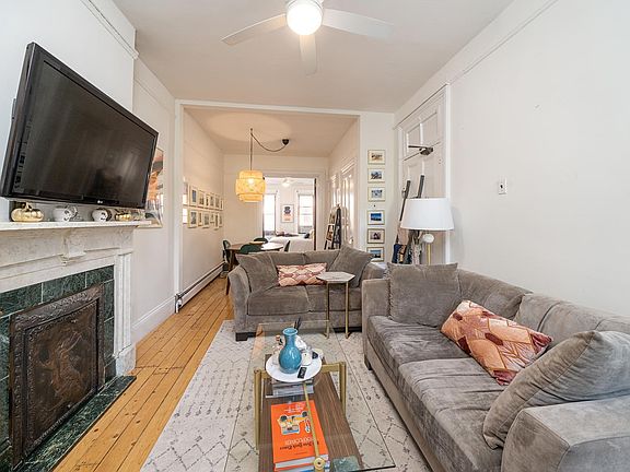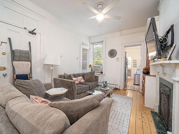 Huge, beautiful full-floor of a handsome mid-town brick row house. Fantastic for a couple or individual in need of a home office, features include great ceiling height and light, ceiling fans, exposed brick, wide-plank pumpkin pine hardwood floors and two original fireplace mantels with cast iron summer covers. Windowed kitchen offers every amenity and quintessential leafy view of neighboring yards. Renovated bathroom features custom tile work, glass shower enclosure and Kohler fixtures. Oversized bedroom enjoys a huge walk in closet with window. Additional den (6'x8') works well as an elegant formal entrance, small bedroom or office. All this close to Hoboken's best parks, shopping and dining with easy transportation into NYC. Rental parking available nearby. 1 Year Lease. $40 Application Fee Per Adult and 1 Month Realtor Fee.