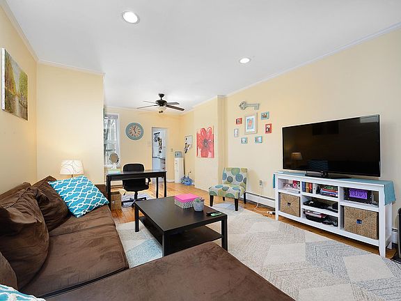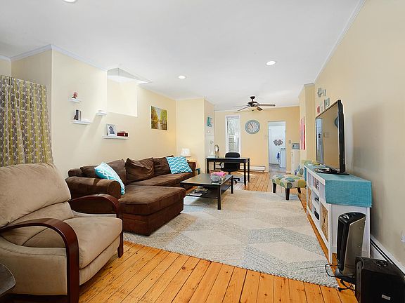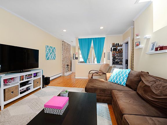 Huge, beautiful full-floor of a handsome mid-town brick row house. Fantastic for a couple or individual in need of a home office, features include great ceiling height and light, ceiling fans, exposed brick, wide-plank pumpkin pine hardwood floors and two original fireplace mantels with cast iron summer covers. Windowed kitchen offers every amenity and quintessential leafy view of neighboring yards. Renovated bathroom features custom tile work, glass shower enclosure and Kohler fixtures. Oversized bedroom enjoys a huge walk in closet with window. Additional den (6'x8') works well as an elegant formal entrance, small bedroom or office. All this close to Hoboken's best parks, shopping and dining with easy transportation into NYC. Rental parking available nearby. NO Fee. 1 year lease. $35 per adult application fee