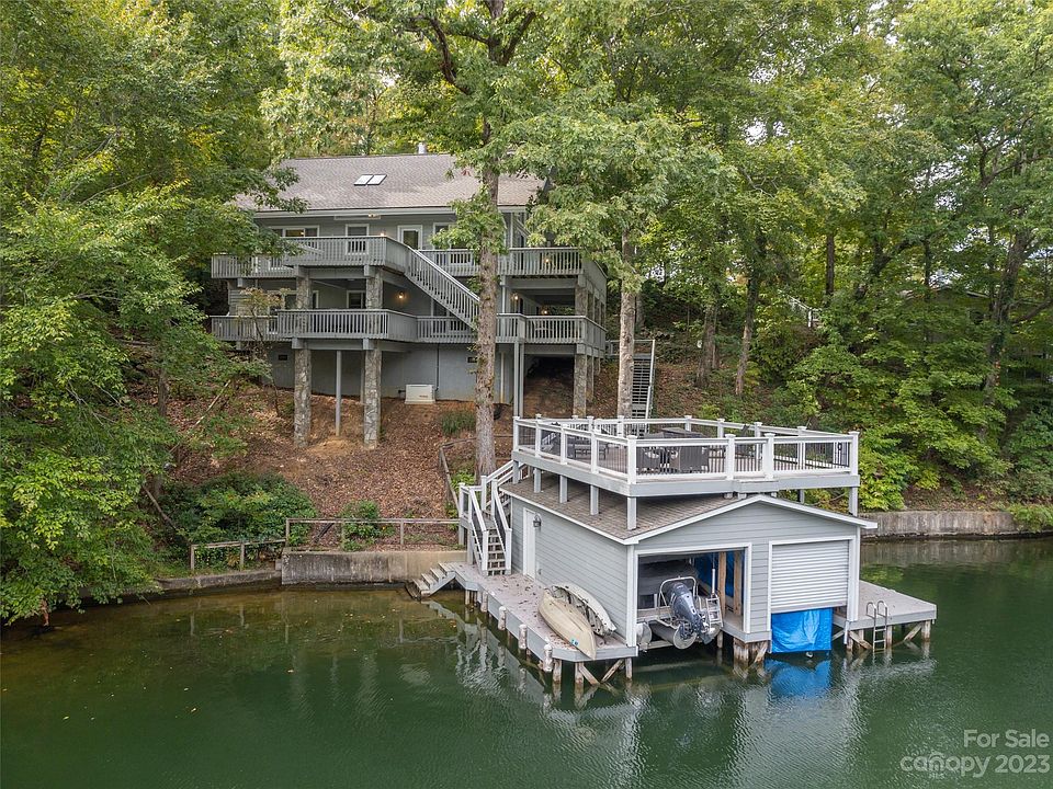 CUSTOM LAKEFRONT HOME with many upgrades throughout this meticulous home. Hardwood Floors. Stone Fireplaces. Viking Kitchen Appliances. Stone Columns and Tons of Deck Space. Great Room features 25' Window Wall. Large Lower Level Den with Stone Fireplace & Wet Bar opens to lower deck and hot tub. Primary Suite on Main Level. Upgraded Bathrooms. Newer 2-Bay Boathouse with electric boat lifts and expansive sundeck.