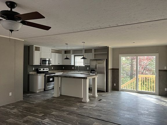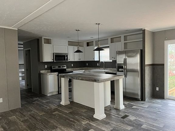 New 2021 Clayton Doublewide! Spacious 3 bedroom, 2 bath with bonus Family Room. Open Floorplan and split bedrooms. Great Kitchen with stainless appliances and island that offers a lot of cabinet and counter space. Large Primary Bedroom with en suite that features dual vanities, a garden tub and separate shower. Two more bedrooms utilize a full bath with tub/shower combo. Use the bonus Family Room for whatever you need. Ample parking and wooded yard. Convenient to town and shopping. (some work still ongoing and must be completed before CO can be obtained)