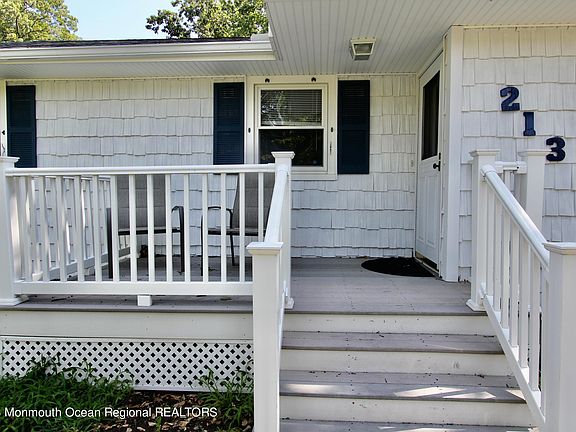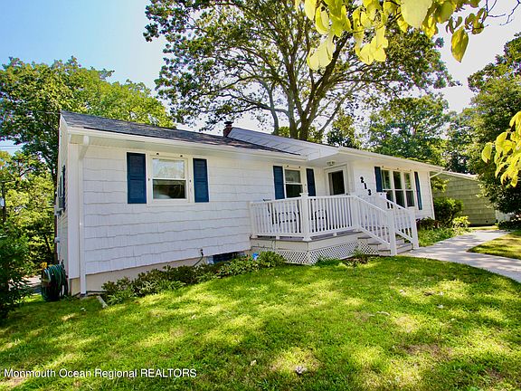 SHARK RIVER HILLS turnkey ranch. Open layout Living/Dining/Kitchen. 3 Bedroom, 2 full baths. Main bath with entrance to the MBR. Hardwood floors under the carpet. Finished walkout basement with Family room, work room with sink, Bonus room. Trex deck front porch, 2 Car garage. HWBB gas heat. Freshly painted interior, vinyl siding exterior. Steps to the River, Bike to the Beach, convenient to GSP & Rt 18, Jersey Shore Hospital, Restaurants and Asbury Park night life. Make your offer known.