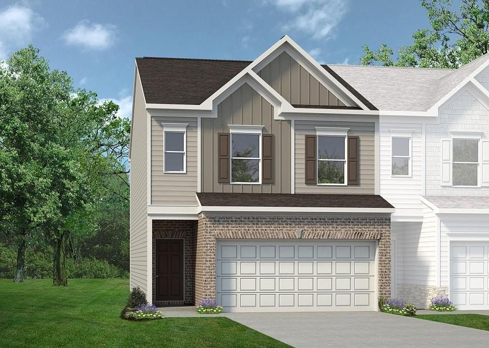 Move in Ready July 2025! The Norwood II plan by Smith Douglas Homes in the new community Jameson Towns! This 3BR/2.5BA end unit townhome features a comforting, convenient and functional layout for modern living. This two-car garage home has a mudroom and coat closet off the owner's entrance providing conveninet storage. The center island kitchen with upgraded cabinets, tile backsplash enhanced with granite counters connects to a cozy breakfast nook and family room with a linear fireplace, creating a warm and inviting living space. The back patio and yard can be accessed from the family room. Easy maintenance Vinyl plank flooring throughout the main living areas on the first floor. An open iron staircase leads to the owner's suite that is situated in the back of the home for privacy. Second story laundry room, two bedrooms and a bathroom are in the front of the home. The versatile loft can be used as a study area, play room etc. Nine ft ceiling heights on both levels. Planned neighborhood pool with cabana, playground and lawn maintenance included in HOA! More time for you! Photos representative of plan not of actual home. Seller incentives with preferred lender.