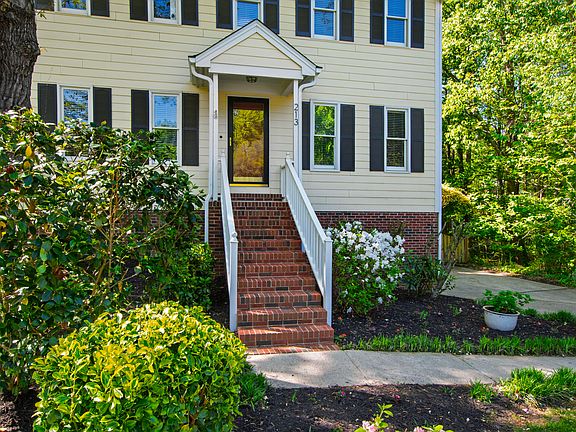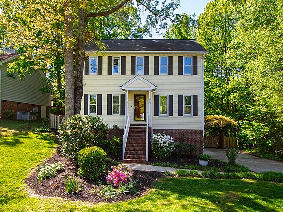 Don't miss this beautifully-maintained home in the heart of Cary with a prime location, stylish updates, and exceptional outdoor gathering space. The interior main level features bamboo flooring, a spacious family room with a cozy wood-burning fireplace flanked by built-in cabinets and bookcases, a generous-size formal dining room, and a well-appointed kitchen with a butcher-block island offering plenty of storage, prep space, and breakfast seating. Fresh paint throughout gives the home a clean, modern feel. Step outside to a multi-level deck overlooking a private, tree-lined backyard — perfect for entertaining or relaxing with family and friends. Greenway access is right across the street, and you're just minutes to I-40, RDU, downtown Cary, and Raleigh. The finished basement adds flexibility and additional storage, and the 2-car garage is also an uncommon perk.