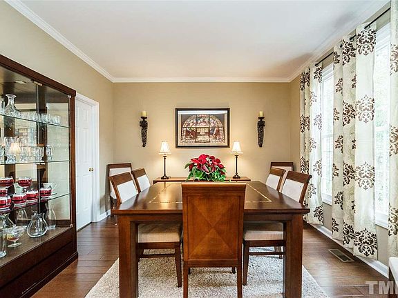 Wonderfully maintained cul-de-sac home in the Park Village neighborhood of Cary. This home offers privacy with immediate access and views of a gorgeous pond, fountain and all. Hardwoods throughout most of the first floor, except for tile in your gourmet kitchen with gorgeous granite slabs for counter-tops. Four bedrooms, all on the second floor. Brand new tiled shower in the master bathroom, and vaulted ceilings in the master bedroom itself. You'll be sold after seeing the pond views at sunset.