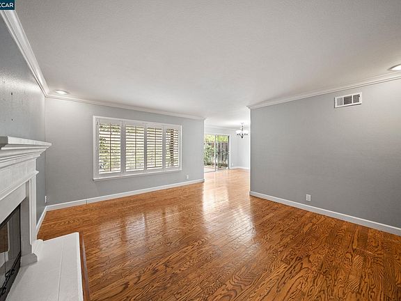 **Open House - Sunday 12:30-3pm..** Come see this amazing opportunity to own this stunning and upgraded Miravilla townhouse close to the high end community of Blackhawk. End unit with attached 2 car garage and next to the guest parking spots. Community pool, parks and hiking trails nearby. Updated with gorgeous hardwood floors, designer paint, recessed lighting and plantation shutters. Beautiful kitchen boasts an abundant amount of cherry cabinets, quartz countertops and stainless steel appliances. Spacious primary bedroom includes vaulted ceiling, on suite master bath and walk in closet. 3 additional bedrooms with ceiling fans. Private back patio off formal dining room with lush landscaping and next to common area. Assigned to top rated schools and close to the favorite Blackhawk Plaza with eateries, shops, theater and nightlife.