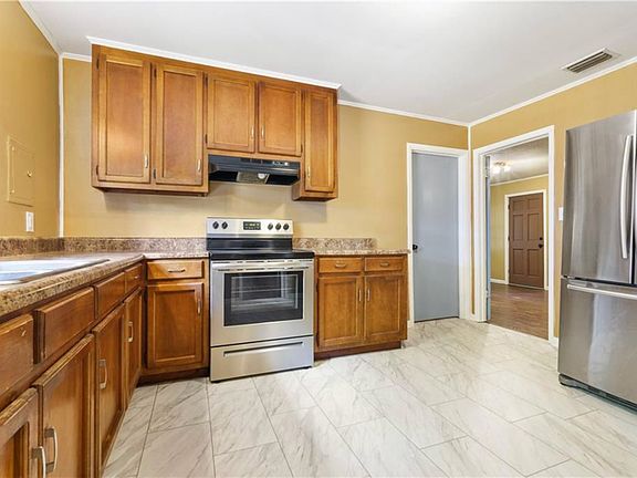 Well maintained home new fridge with ice and water, 1 yr old stove glass top, has a dishwasher. Hook ups for washer dryer.