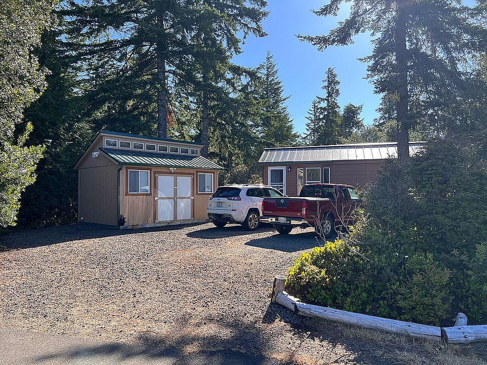 Level lot near clubhouse, includes storage shed. Lot has been graded and covered with gravel. Water service has been upgraded, water and sewer lines were added under the gravel to service the opposite side of the property. Several threatening shore pines have been removed, and more usable space has been improved on the southeast corner of the property.