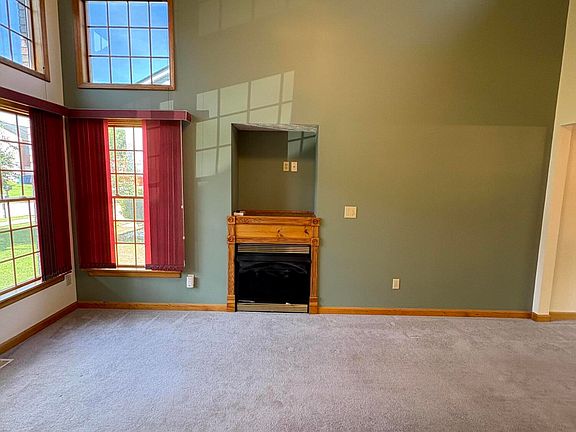 Step into the dramatic two-story living room, flooded with natural light from expansive windows and anchored by a sleek electric fireplace. Solid wood windows and doors add timeless character and quality craftsmanship throughout.