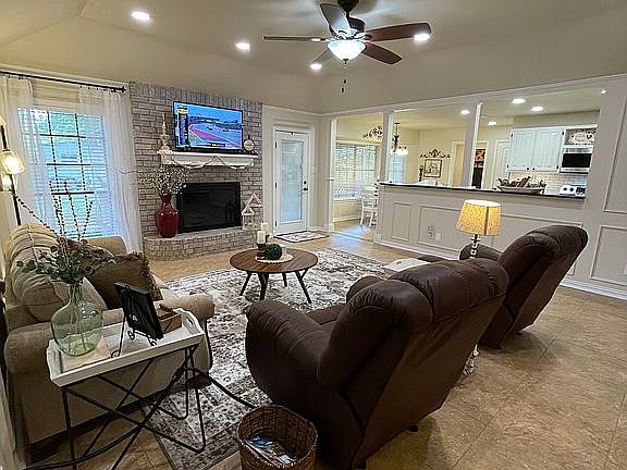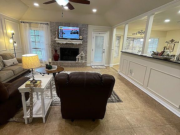 SpringHill home in sought after Hills & Trails neighborhood. 3/2/2 with 1798 sqft. Features include tray ceilings, WBFP, open kitchen, SS appliances, formal dining, or office, and mud room. Nice laundry with ample cabinets, open shelving, and folding table. Separate his and her walk-in closets in master bedroom. Other two bedrooms include walk-in closets as well. Guest bath has shower/tub combo with ceramic tile; and en suite master bath has been completely updated. Large covered patio and 12x10 wooden storage building. HVAC replaced in 2021. Outside AC unit replaced in 2020. Lot is .31 acre. This neighborhood is off of George Richey Rd. not what the Zillow map is showing.