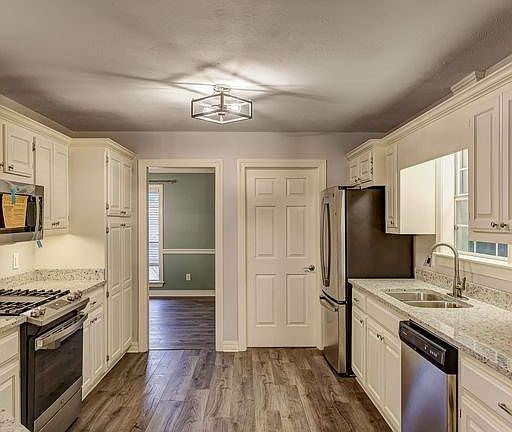 Come see this beautiful home on a quiet cul-de-sac in Brookwood subdivision. This home offers @ 3000 square feet that includes 5 bedrooms and 3 full baths. You will love the spacious kitchen with tons of cabinets and new granite countertop space as well as a breakfast nook. This kitchen has been updated with fresh paint on cabinets, new counter tops, and all new appliances. Other features include freshly painted living areas with built-ins around brick gas log fireplace, formal dining room, and a tiled sunroom off the living area facing the pool. The ground floor large master bedroom has tray ceiling, two walk-in closets, and French doors to the backyard pool. Master bath has 2 sinks, large soaker tub, and separate shower. There are three additional bedrooms on other side of home. Upstairs features even more living space with a large bonus room with full bath and closet space which could be used as 5th bedroom. The fenced in backyard has a large patio around the beautiful in-ground pool with cafe style lighting surrounding the pool giving a relaxing atmosphere. This is an entertainers home with great kitchen and gathering space for everyone. Master is on the lower level.